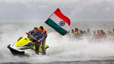 આ તસવીર મધ્યપ્રદેશના ભોપાલની છે, જ્યાં પ્રવાસીઓ જેટ સ્કાય રાઈડ કરી રહ્યા છે, જ્યાં તેમણે ત્રિરંગો પણ લગાવ્યો છે.