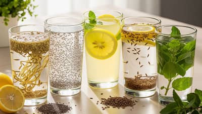 ચિયા બીજનું પાણી: ચિયા બીજ ફાઇબરથી ભરપૂર હોય છે. પાણીમાં પલાળી રાખવાથી તે ફૂલી જાય છે અને જેલ જેવી સુસંગતતા બનાવે છે. સવારે આ પાણી પીવાથી તમને લાંબા સમય સુધી પેટ ભરેલું રહે છે, વધુ પડતું ખાવાનું ટાળવામાં મદદ મળે છે. ચિયા બીજનું પાણી પાચનમાં સુધારો કરે છે અને કબજિયાત જેવી સમસ્યાઓથી પણ રાહત આપે છે.