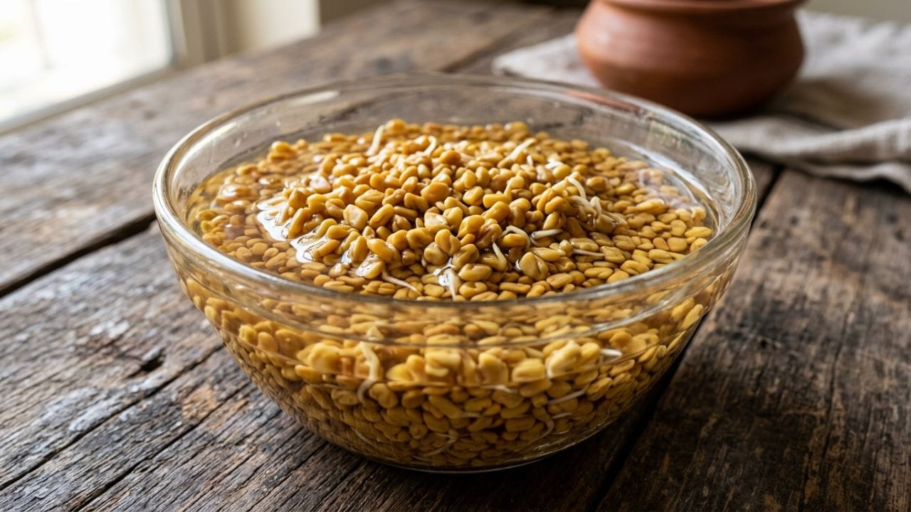 પલાળેલા મેથીના દાણા ચમકદાર ત્વચા મેળવવા માટેનું એક ખાસ રહસ્ય છે. તેમાં એન્ટીઓક્સીડેન્ટ અને સોજા વિરોધી (anti-inflammatory) ગુણધર્મો હોય છે, જે ખીલ સામે લડવામાં તેમજ ત્વચાની બળતરા ઘટાડવામાં મદદ કરે છે. તે એક્ઝિમા અને સોરાયસીસ જેવી સ્થિતિમાં પણ રાહત આપી શકે છે, જેનાથી ત્વચા વધુ સ્વસ્થ બને છે.