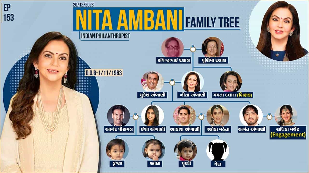 નીતા અંબાણીનો જન્મ મુંબઈમાં રવિન્દ્રભાઈ દલાલ અને પૂર્ણિમા દલાલને ત્યાં થયો હતો. નીતા અંબાણી જેટલા સમાચારોમાં રહે છે તેટલી જ તેમની માતા પૂર્ણિમા દલાલ દલાલ અને મમતા દલાલ મીડિયાથી દૂર રહે છે. તેના વિશે બહુ ઓછા લોકો જાણે છે.આજે નીતા અંબાણીના પરિવાર વિશે જાણીએ.