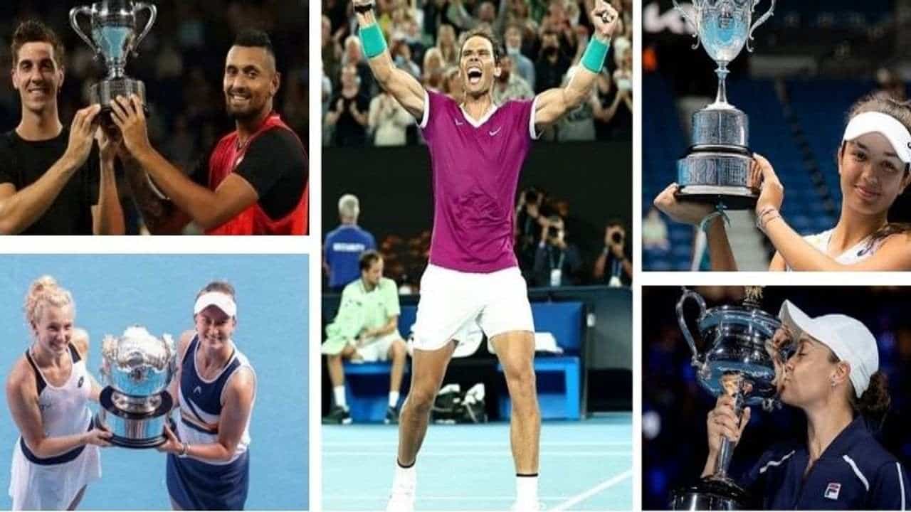 રાફેલ નડાલે ઓસ્ટ્રેલિયન ઓપનની ફાઇનલમાં હારમાંથી વાપસી કરીને ડેનિલ મેદવેદેવને હરાવી રેકોર્ડ 21મું પુરૂષ સિંગલ્સ ગ્રાન્ડ સ્લેમ ટાઇટલ જીત્યું. રોમાંચક ફાઇનલ મેચમાં નડાલે 6-2, 7-6, 6-4,6-4,7-5થી જીત મેળવી હતી.