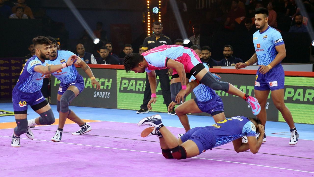 જયપુર પિંક પેન્થર્સ અને બંગાળ વોરિયર્સે ગુરુવારે ટ્રાન્સસ્ટેડિયાના એકેએ એરેના ખાતે ખૂબ જ રસાકસી સાથે 28-28 થી સિઝનની પ્રથમ મેચ ડ્રો રમી હતી. ભવાની રાજપૂતે જયપુર પિંક પેન્થર્સ માટે સુપર 10નો રેકોર્ડ નોંધાવ્યો હતો, આ દરમિયાન વોરિયર્સ તરફથી શ્રીકાંત જાધવે મેચમાં સૌથી વધુ 7 પોઇન્ટ મેળવ્યા હતા.