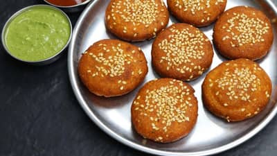 દસ મિનિટ બાદ લોટમાંથી નાના ગોળા વાળી તેને બંન્ને હાથ વડે દબાવી ચપટા બનાવી લો. હવે એક પેનમાં તેલ ગરમ કરવા મુકો. તેલ મીડીયમ ગરમ થાય ત્યારે તેમાં વડા નાખી ધીમા તાપે બંન્ને બાજુ ગોલ્ડન ફ્રાય કરી લો.