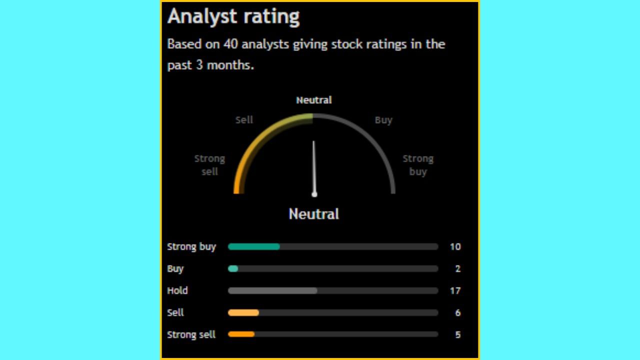 'Nestle India Ltd' ના શેરને લઈને 40 એનાલિસ્ટે પોતાનો મંતવ્ય રજૂ કર્યો છે. 40 માંથી 12 લોકોએ આ સ્ટોક ખરીદવાની સલાહ આપી છે, જ્યારે 17 એનાલિસ્ટે આ શેરને હોલ્ડ પર રાખવાની વાત કરી છે. બીજીબાજુ 11 એનાલિસ્ટે આ સ્ટોકને વેચવાની સલાહ આપી છે.