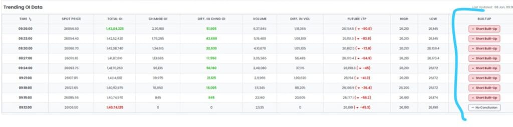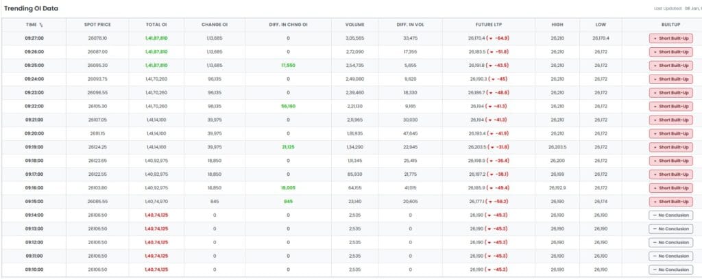 નિફ્ટી ફ્યુચર્સ પર, દર મિનિટે સતત ટૂંકા બિલ્ડ-અપ થાય છે, જેનો અર્થ એ થાય કે દર મિનિટે નિફ્ટી ફ્યુચર્સમાં નવા, તાજા શોર્ટ સેલિંગ ટ્રેડ ઉમેરવામાં આવી રહ્યા છે.