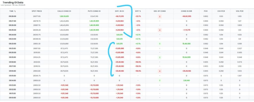 નિફ્ટી ફ્યુચર પર પહેલી મિનિટથી જ ટૂંકા ગાળાના રોકાણમાં વધારો થઈ રહ્યો છે, જેનો અર્થ એ થાય કે નિફ્ટી નીચે તરફ ધકેલાઈ રહ્યો છે.