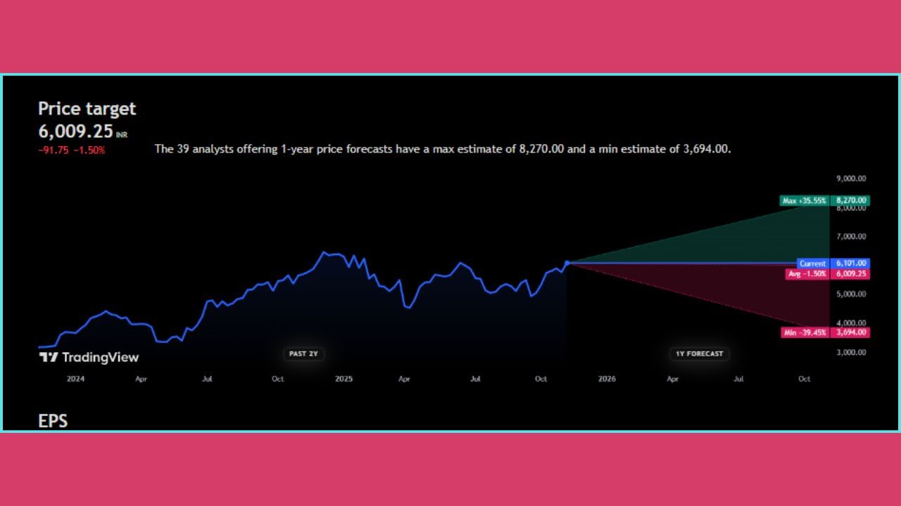'Persistent Systems Limited' ના સ્ટોકની વાત કરીએ તો, તે ₹6,101.00 ની આસપાસ ટ્રેડ થઈ રહ્યા છે. નિષ્ણાતોના મત મુજબ, 'Persistent Systems Limited' ના શેર ભવિષ્યમાં -1.50% ઘટીને ₹6009.25 ની નીચે આવી શકે છે. જો કે, આવનારા 1 વર્ષમાં આ સ્ટોક +35.55% વધીને ₹8270.00 ની આસપાસ પહોંચી શકે છે, જ્યારે તેમાં -39.45% સુધીનો ઘટાડો આવશે તેવી શક્યતા છે. જો ઘટાડો આવશે તો શેરની કિંમત ₹3694.00 ના તળિયે આવી શકે છે.