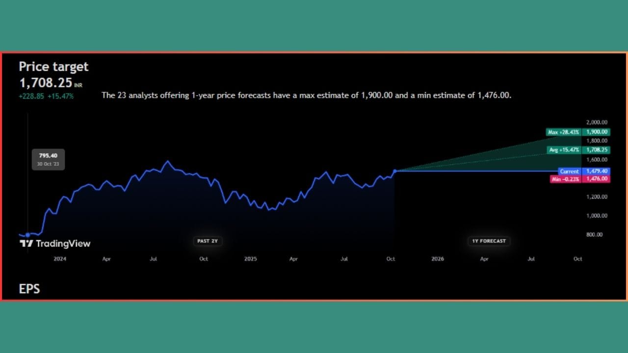 ભવિષ્યમાં એટલે કે આવનારા 1 વર્ષમાં આ સ્ટોક +24.44% વધીને ₹3240 પર પહોંચી શકે છે અને જો ઘટાડો આવશે તો, આ જ શેર -24.49% ઘટીને ₹1966 ની નીચી સપાટીએ આવી શકે છે. ટૂંકમાં જોઈએ તો, આ શેર એક વર્ષમાં ₹2761.60 ની આસપાસ જોવા મળશે, તેવો અનુમાન નિષ્ણાતો લગાવી રહ્યા છે.