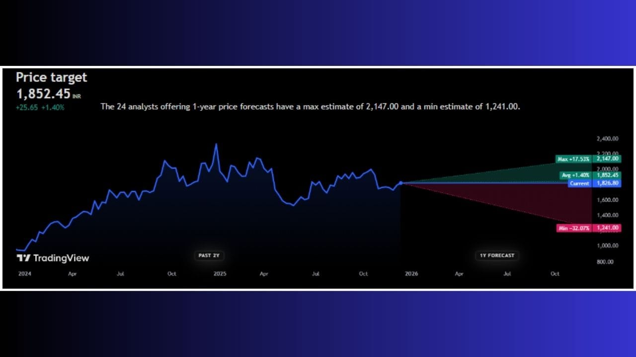 'Lodha Developers Ltd.' ના શેર હાલમાં તો ₹1,063.80 પર ટ્રેડ થઈ રહ્યા છે. જો કે, ભવિષ્યમાં આ શેરનો ભાવ +37.34% જેટલો વધી શકે છે અને તે ₹1461.05 પર જોવા મળી શકે છે. નિષ્ણાતોના જણાવ્યા અનુસાર, આગામી 1 વર્ષમાં 'Lodha Developers Ltd.' ના શેર +77.48% વધીને ₹1888.00 ની આસપાસ જોવા મળશે, તેવી શક્યતા છે.