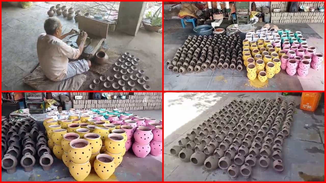 ત્યારે હાલ હવે નવલા નોરતા આવી રહ્યા છે અને માં અંબાની આરાધના કરવા ધર્મપ્રેમી મહિલાઓ બાળકીઓ થનગની રહી છે, ત્યારે થાનગઢ સીરામીક ઉધોગમાં રંગ બેરંગી માટીના કોડીયા ગરબા બનવાના શરૂ થઇ ગયા છે.