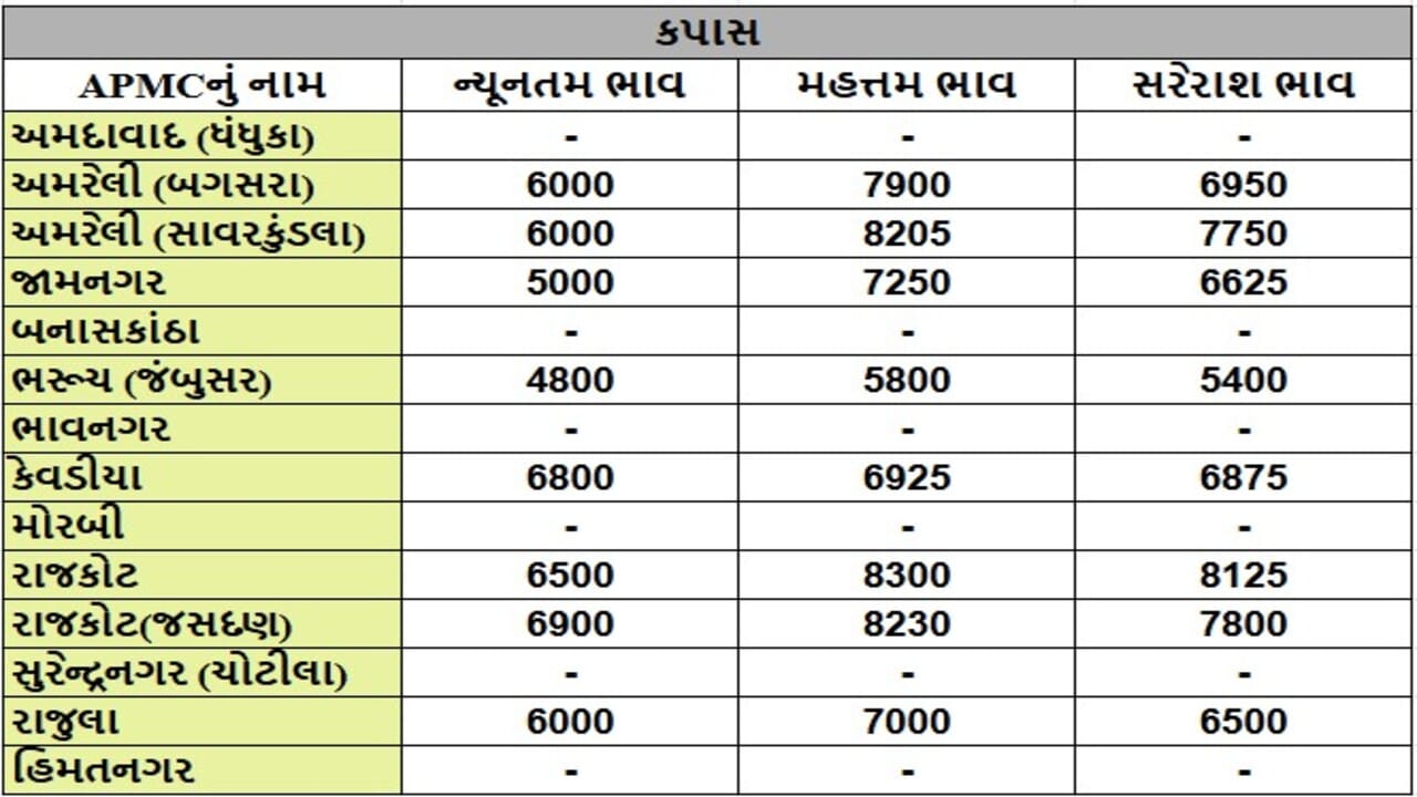 કપાસના તા.12-08-2025ના રોજ APMCના ભાવ રૂ.4800 થી 8300 રહ્યા.