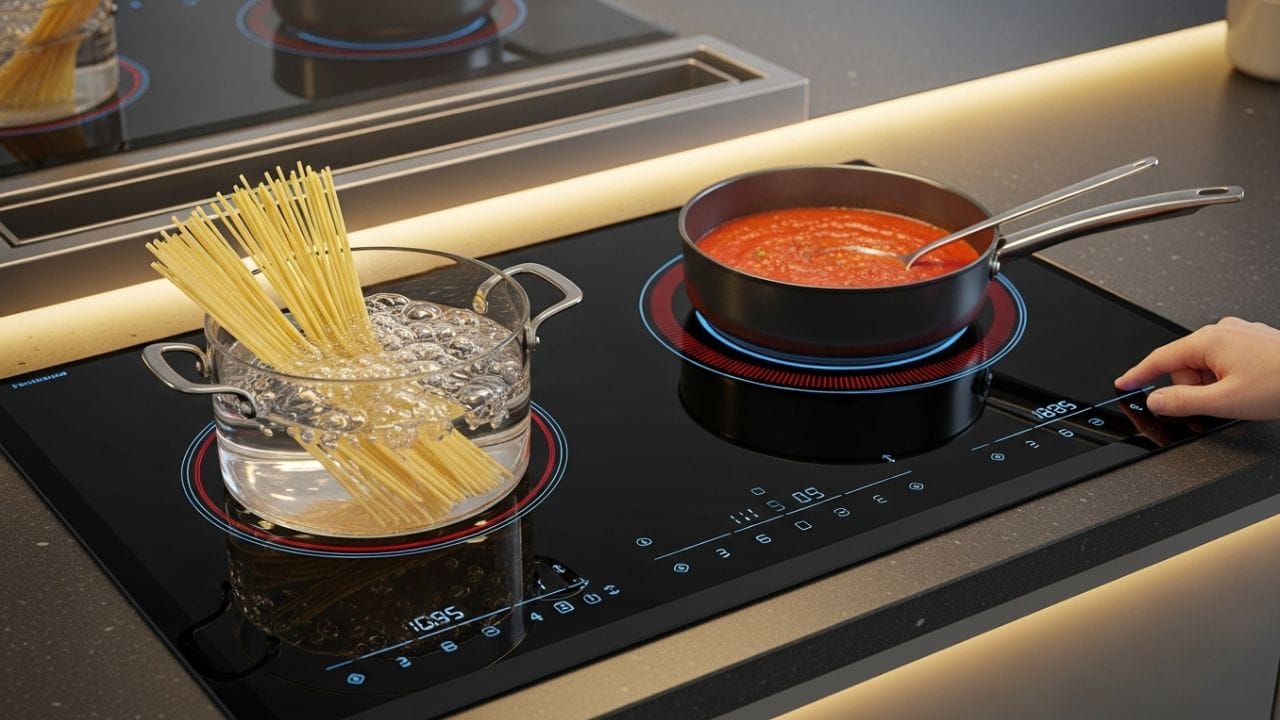ઇન્ડક્શન કુકટોપના ફાયદા: તેના પર ખોરાક ઝડપથી રાંધાય છે. ગેસ સ્ટોવથી વિપરીત, તે ચલાવવામાં સરળ અને સાફ છે. વીજળી પુરવઠો હોય તો તેનો ઉપયોગ કોઈપણ સમયે કરી શકાય છે. આ જ કારણોસર, ઘણા પરિવારો હવે તેમના ગેસ સ્ટોવની સાથે ઇન્ડક્શન કુકટોપને તેમના રસોડાના અભિન્ન ભાગ બનાવી રહ્યા છે. (ફોટો ક્રેડિટ-Whisk ai image)