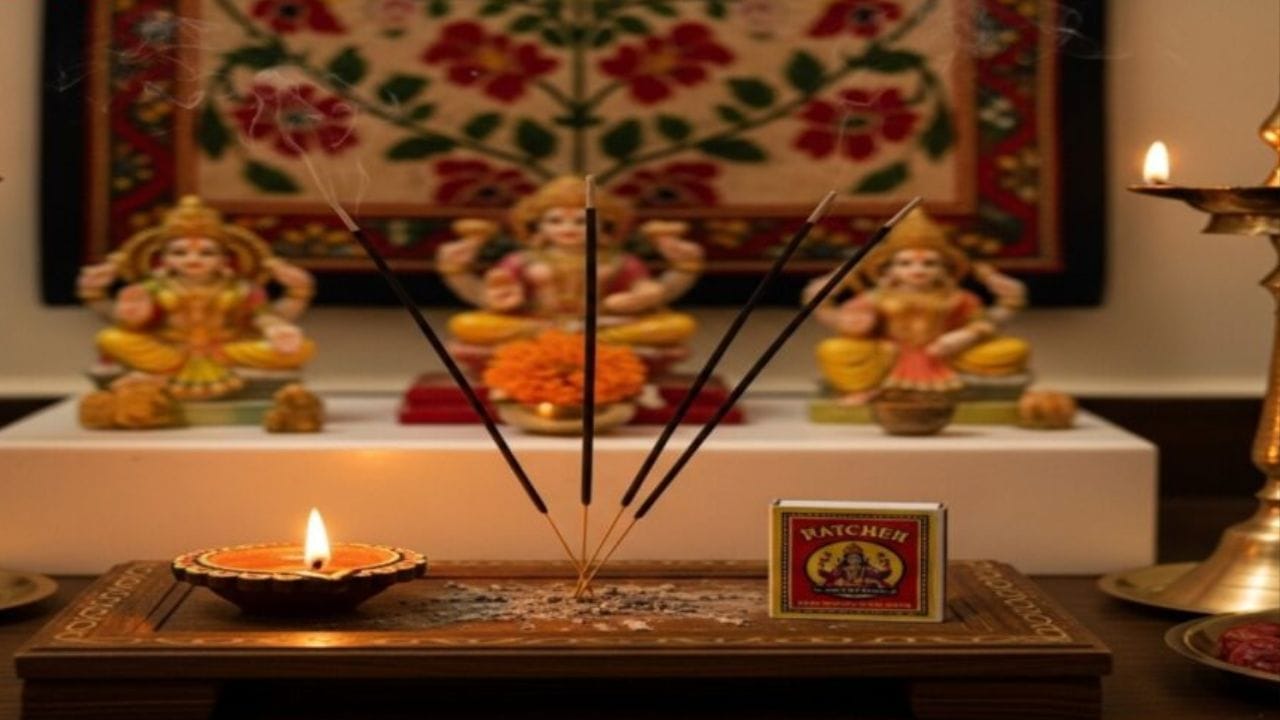 અગરબત્તી, તેલના દીવા અને ધૂપને પ્રગટાવવા સામાન્ય રીતે માચીસનો ઉપયોગ કરે છે - ધાર્મિક વિધિઓ અને પૂજાના અભિન્ન ઘટકો છે; છતાં, મંદિરની અંદર દિવાસળી રાખવા યોગ્ય માનવામાં આવતું નથી. વાસ્તુ શાસ્ત્ર અનુસાર, પવિત્ર જગ્યામાં જ્વલનશીલ વસ્તુઓ મૂકવાથી 'વાસ્તુ દોષ' થઈ શકે છે, જે ઘરની સકારાત્મક ઉર્જાને જ ઘટાડે છે સાથે જ પૂજાથી મળતા આધ્યાત્મિક લાભોને પણ ઘટાડે છે. (ફોટો ક્રેડિટ-સોશિયલ મીડિયા)