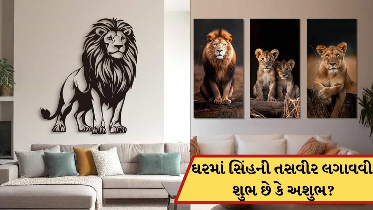 વાસ્તુ શાસ્ત્રમાં ઘરમાં ઘણી તસવીરો લગાવવાને લઈને શુભ અને અશુભ પ્રભાવો જણાવવામાં આવ્યા છે. ઘણા લોકો ઘરમાં 7 ઘોડા જેવી તસવીરો લગાવે છે, પણ શું ઘરમાં સિંહની તસવીર લગાવવી શુભ છે કે અશુભ, ચાલો અહીં જાણીએ