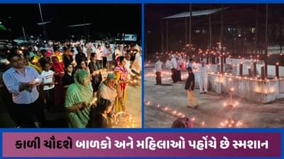 કાળી ચૌદશે ગામ આખુ સ્મશાનમાં પહોંચે છે, દિવડા પ્રગટાવે છે અને કરે છે આરતી