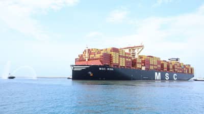 વિશ્વનું સૌથી મોટું કન્ટેનર જહાજ 'MSC ઈરિના' સોમવારે સવારે કેરળના તિરુવનંતપુરમમાં વિઝિનજમ આંતરરાષ્ટ્રીય બંદર પર પહોંચ્યું, જે મંગળવાર સુધી અહીં રહેશે. તે 24,346 TEU (વીસ-ફૂટ સમકક્ષ એકમ) ક્ષમતા પર આધારિત વિશ્વનું સૌથી મોટું કન્ટેનર જહાજ છે.