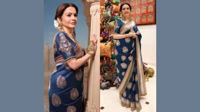 નીતા અંબાણીનો સૌથી સરળ લુક પણ અતિ વૈભવી છે. આર્યનના ડેબ્યૂ શોના સ્ક્રીનિંગ માટે તેણે બનાવેલો આ બેદાગ લુક એકદમ ખૂબસૂરત છે. નીતા અંબાણી જેડ ગ્રીન લેમે સાડીમાં ખૂબ જ સુંદર લાગે છે. તેણે સાડીને સ્વારોવસ્કી ક્રિસ્ટલ્સથી શણગારેલા નાજુક ચેન્ટીલી લેસ બ્લાઉઝ સાથે જોડી દીધી, જેનાથી તેના લુકની સમૃદ્ધિમાં વધારો થયો. તેણે દુર્લભ પરાઇબા અને હાર્ટ આકારના હીરાથી બનેલા સુંદર ફ્લોરલ જ્વેલરીથી પોતાનો લુક પૂર્ણ કર્યો.
