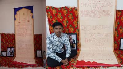 ગુજરાતમાં હવે લગ્નની સિઝન શરુ થઈ ગઈ છે. ત્યારે લોકો અવનવા પ્રકારની આમંત્રણ પત્રિકાઓ છપાવડાવતા હોય છે. તેમજ અલગ અલગ પ્રકારની થીમ પર લગ્નના ફંકશન કરતા હોય છે. તો અત્યારે રાજકોટની એક કંકોત્રી સોશિયલ મીડિયા પર વાયરલ થઈ રહી છે. જેને ભારતની સૌથી મોટી કંકોત્રી હોવાનું માનવા આવે છે. એટલુ જ નહિં લગ્ન કરનાર યુવકે જાતે જ સૌથી મોટી કંકોત્રી બનાવવી છે.