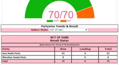 દિલ્હી વિધાનસભા ચૂંટણીના સંપૂર્ણ પરિણામ જાહેર થઈ ચૂક્યા છે. ચૂંટણી પંચ દ્વારા જાહેર પરિણામમાં આમ આદમી પાર્ટીને 62 બેઠક અને ભાજપના ખાતામાં 8 બેઠક ગઈ છે. આ સાથે વિજયનો કળશ અરવિંદ કેજરીવાલના નામે ઢોળાયો છે. ગત વખતે ભાજપના ખાતામાં માત્ર 3 બેઠક આવી હતી. અને અરવિંદ કેજરીવાલના ખાતામાં 67 સીટ આવી હતી. જો કે, સમય રહેતા AAPના કેટલાક ધારાસભ્યોએ રાજીનામું ધરી દીધુ હતું. જેમાં એક કપિલ મિશ્રાએ આ વખતે ભાજપની ટિકિટ પર ચૂંટણી લડી હતી. પરંતુ આ વખતની ચૂંટણીમાં તેમને હારનું મોઢું જોવું પડ્યું હતું.
