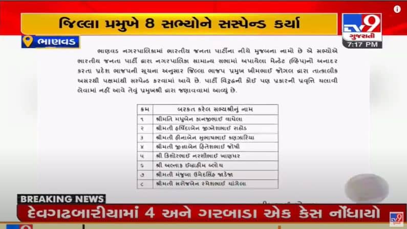 DWARAKA : ભાણવડ ભાજપમાં આંતરિક ડખો, વ્હીપના અનાદર બદલ આઠ સભ્યો સસ્પેન્ડ