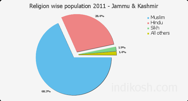 જમ્મુ કાશ્મીર એક મુસ્લિમ બહુમતી રાજ્ય છે. તો માત્ર જમ્મુની વસ્તીમાં 65 ટકા હિન્દુ અને 30 ટકા મુસ્લિમ છે. કાશ્મીરની ઘાટીમાં પાણીનો ભાગ વધુ છે. કાશ્મીરમાં વધુ પ્રમાણમાં નદી અને સરોવર છે. ભારતમાં સૌથી મોટી મીઠાપાણીની ઝીલ પણ છે.