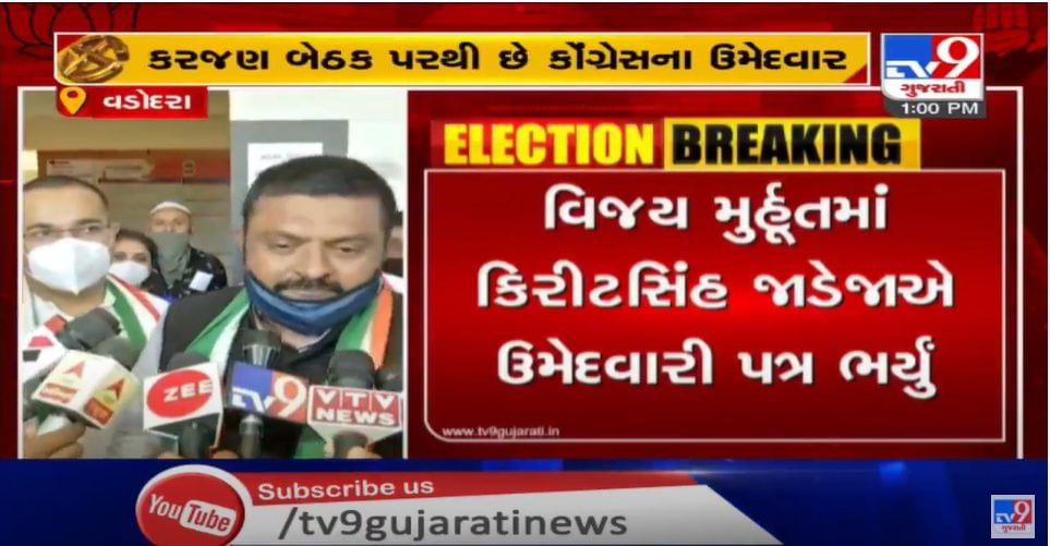 ભારે કકળાટ બાદ કરજણ બેઠક પર કોંગ્રેસ ઉમેદવાર કિરીટસિંહ જાડેજાએ ફોર્મ ભર્યું