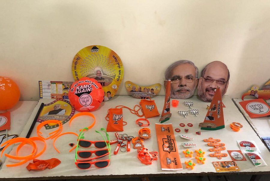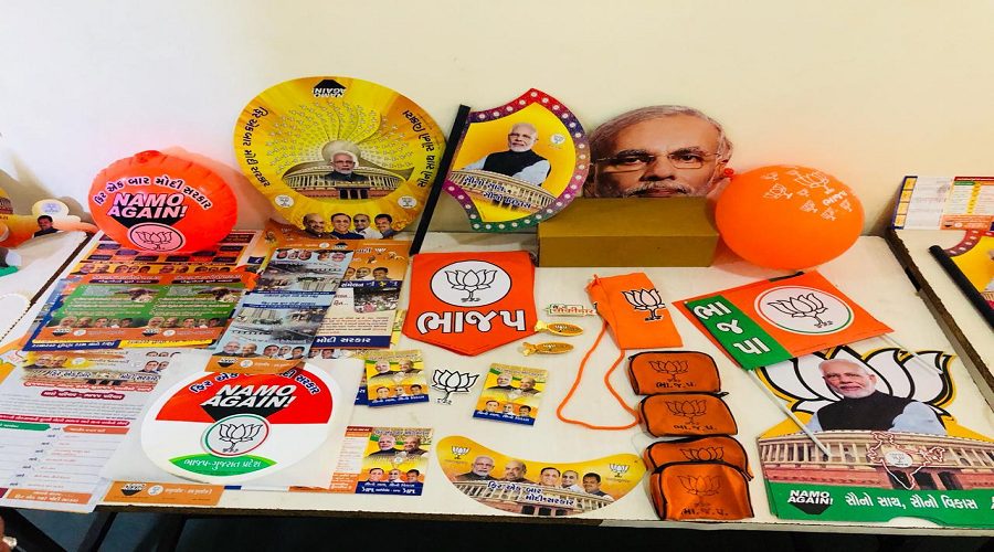 મહિલાઓ માટે ગળામાં પહેરવાની માળા હોય કે નાનું પાકિટ, હેયર બેન હોય કે સાડી પીન આ તમામ વસ્તુઓ બીજેપીના ચૂંટણી પ્રચાર માટે તૈયાર કરાઇ છે. કમળ અને ભગવા રંગમાં રંગાયેલી અને કમળના આકાર પ્રકારની આ સામગ્રીઓ હાલ બીજેપી ઇલેક્શન પ્રચારમાં ઉપયોગ કરશે. બીજેપી આ વખતે મહિલાઓ અને યુવાઓને ખાસ ટાર્ગેટ કરીને સમાગ્રીઓ બનાવડાવી છે. જેમાં કમળ સ્પીન્ડલ, કમળ પેન્ડન્ટ, હાથમાં પહેરાવાના ટાઇ,બકલ ટી શર્ટ, હેન્ડ બેલ્ટ વિગેરેનો સમાવેશ થાય છે. 51 પ્રકારની વસ્તુઓ બનાવાઇ છે. પાર્ટી રાજ્યના 50 હજાર બુૂથો ઉપર આ સમાગ્રી મોકલીને મતદારોને સીધા આકર્ષવાનો પ્રયત્ન કરશે.