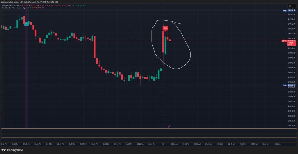 દિવસની પહેલી કેન્ડલ પર વેચાણનો સંકેત, જેનો અર્થ છે કે નિફ્ટી અહીંથી 50 થી 75 પોઈન્ટ નીચે જશે