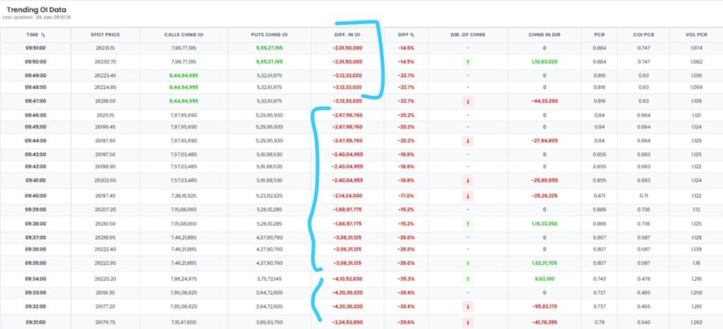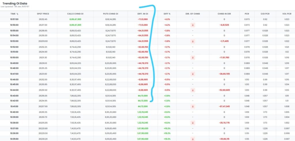 નિફ્ટીમાં દર મિનિટે OI (OI) માં તફાવતમાં ઝડપી ઘટાડો અને વધારો જોવા મળી રહ્યો