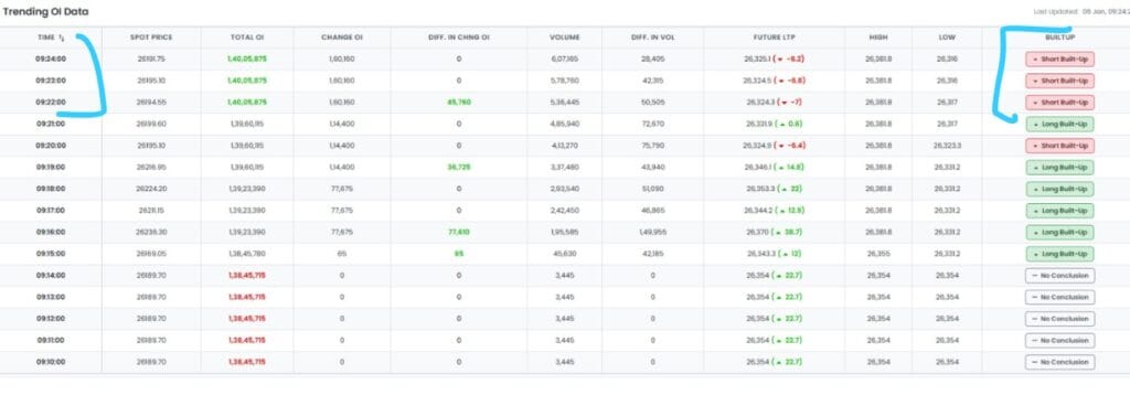 સાવધાન રહો અને નિફ્ટીમાં નાના ઇન્ટ્રાડે પુલબેકને તેજીની દોડ ન સમજો. નિફ્ટી ફ્યુચર્સમાં, 15 મિનિટની સમયમર્યાદામાં સવારથી જ ફક્ત ટૂંકા બિલ્ડઅપ થઈ રહ્યા છે, જેનો અર્થ એ છે કે નિફ્ટીમાં શોર્ટ સેલિંગ અથવા પ્રોફિટ બુકિંગ થઈ રહ્યું છે.