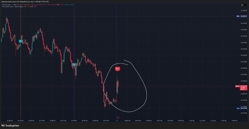દિવસની પ્રથમ કેન્ડલ પર વેચાણનો સંકેત આવ્યો છે, જેનો અર્થ છે કે નિફ્ટી અહીંથી લગભગ 50 થી 75 પોઈન્ટ નીચે જઈ શકે છે.