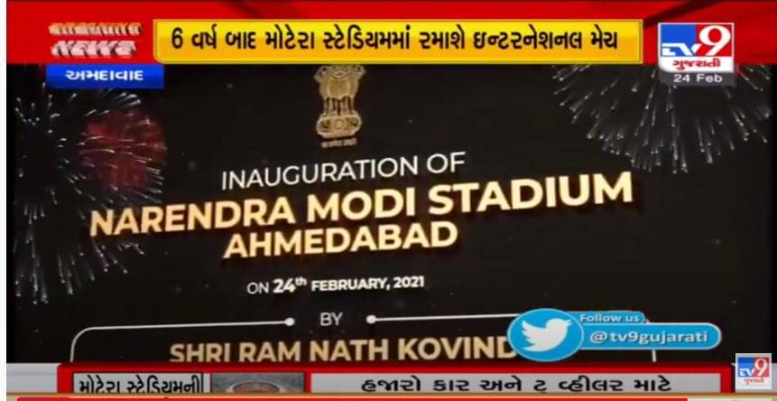 Ahmedabad Motera Stadium: અમદાવાદમાં આવેલા મોટેરા સ્ટેડિયમ હવેથી ‘નરેન્દ્ર મોદી સ્ટેડિયમ’ તરીકે ઓળખાશે. વિશ્વના સૌથી મોટા સ્ટેડિયમનું રાષ્ટ્રપતિ રામનાથ કોવિંદના હસ્તે ઉદઘાટન કરવામાં આવ્યું. આ સ્ટેડિયમ પરંપરાગત રીતે મોટેરા સ્ટેડિયમ તરીકે ઓળખવામાં આવતું હતું પરંતુ હવે તેનું નામ બદલીને નરેન્દ્ર મોદી સ્ટેડિયમ રાખવામાં આવ્યું છે. આજે રાષ્ટ્રપતિના હસ્તે સરદાર વલ્લભભાઈ પટેલ સ્પોર્ટ્સ એન્કલેવનું પણ ઉદઘાટન કરવામાં આવ્યું છે. આ પ્રસંગે ગૃહમંત્રી અમિત શાહ, ખેલમંત્રી કિરણ રિજીજુ, રાજ્યપાલ આચાર્ય દેવવ્રત, ડેપ્યુટી સીએમ નીતિન પટેલ રહ્યા ઉપસ્થિત. અમિત શાહે આ અંગેની જાહેરાત કરતા કહ્યું કે, સરદાર પટેલ સ્પોર્ટ્સ કોમ્પ્લેક્સ, નારણપુરામાં 18 એકરનું સ્પોર્ટ્સ કોમ્પ્લેક્ષ બનશે. આંતરરાષ્ટ્રીય રમતવીરો માટે તમામ સુવિધાઓ એક જ શહેરમાં હશે. 233 એકર જમીન પર બધુ તૈયાર થશે. ઓલિમ્પિક રમત માટે 6 મહિનામાં તૈયાર થઈ શકીએ એટલી ક્ષમતા આપણી છે. અમદાવાદ હવે સ્પોર્ટ્સ સિટીના નામે ઓળખાશે.