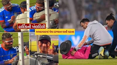 આ ઘટનાની થોડી જ મિનિટોમાં ફરી એક દુર્ઘટના સર્જાઈ. ભારતીય ઇનિંગ્સની 13મી ઓવરમાં બેટિંગ કરવા આવેલા હાર્દિક પંડ્યાએ પહેલો જ બોલ જોરદાર રીતે ફટકાર્યો, જે લોંગ-ઓફ બાઉન્ડ્રી તરફ છ રન માટે જઈ રહ્યો હતો. જોકે, બાઉન્ડ્રી નજીક ઉભેલા કેમેરામેનના ડાબા હાથ પર બોલ જોરથી વાગ્યો, જેને કારણે સ્ટેડિયમમાં ફરી એકવાર ચિંતા ફેલાઈ ગઈ.