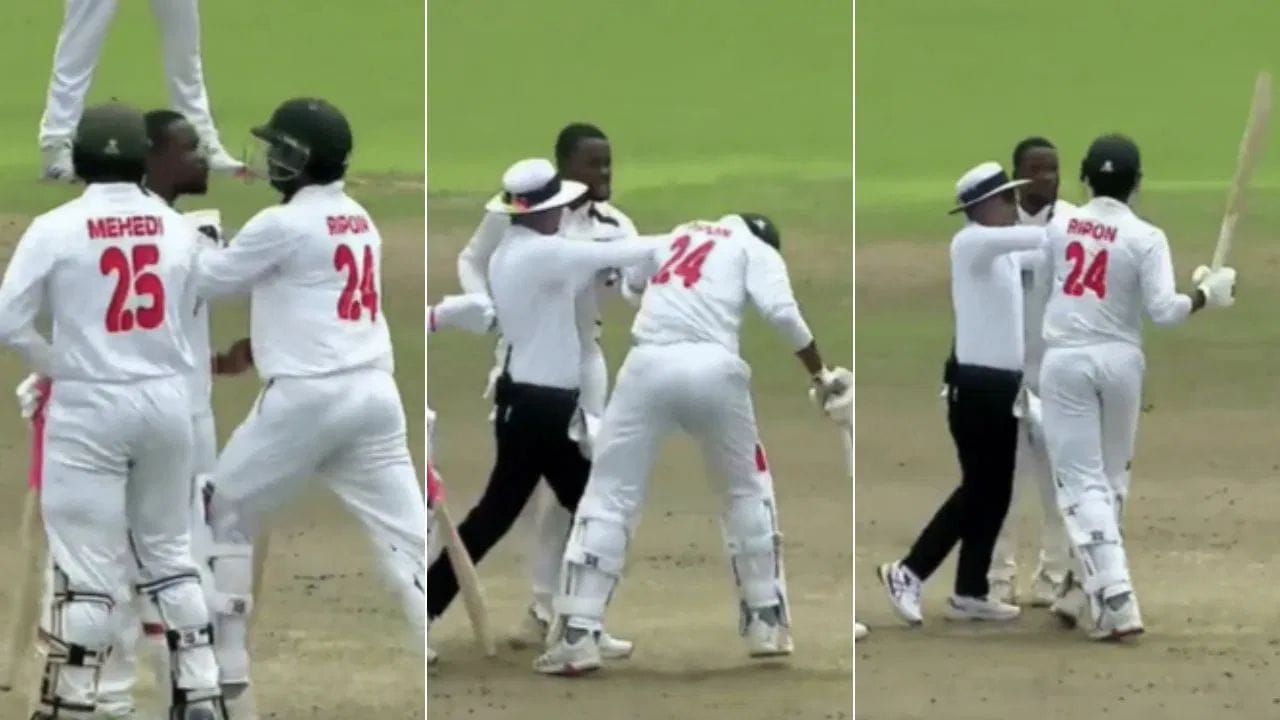 વાસ્તવમાં, આ ઘટના ઢાકાના શેર-એ-બાંગ્લા નેશનલ સ્ટેડિયમમાં દક્ષિણ આફ્રિકા ઈમર્જિંગ અને બાંગ્લાદેશ ઈમર્જિંગ વચ્ચે રમાઈ રહેલી બીજી બિનસત્તાવાર ટેસ્ટ મેચ દરમિયાન બની હતી. રમતના બીજા દિવસે, દક્ષિણ આફ્રિકાના ખેલાડી ત્શેપો ન્ટુલી અને બાંગ્લાદેશના રિપન મંડલ વચ્ચે ઉગ્ર દલીલ થઈ, બંને ખેલાડીઓ એકબીજાને ધક્કો મારતા જોવા મળ્યા. મામલો મારપીટ સુધી પહોંચી ગયો અને બાંગ્લાદેશના રિપન મંડલે બેટથી મારવાનો પ્રયાસ પણ કર્યો, ત્યારબાદ અમ્પાયર અમ્પાયર વચ્ચે પડ્યા.