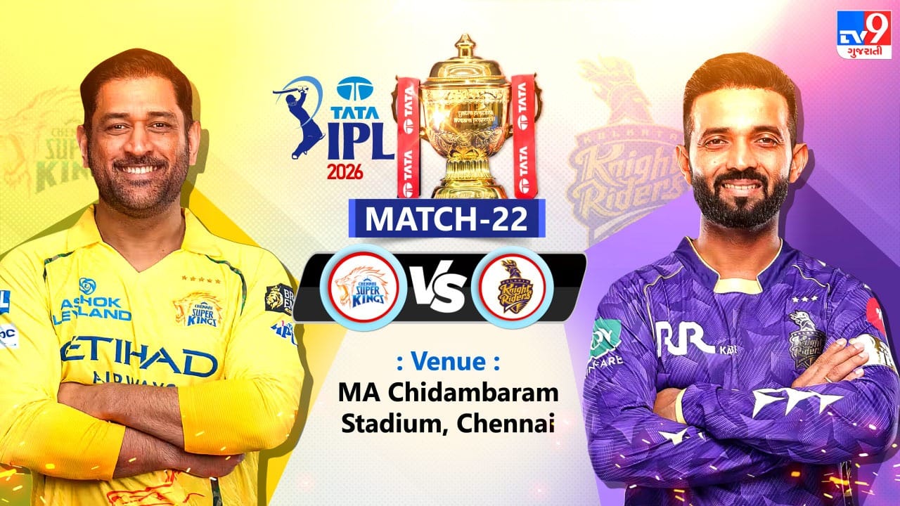 IPL 2026માં આજે સિઝનના 22 મા મુકાબલામાં ચેન્નાઈ સુપર કિંગ્સ અને કોલકાતા નાઈટ રાઈડર્સ વચ્ચે મુકાબલો યોજાઈ રહ્યો છે. મેચ પહેલા બંને ટીમના કેપ્ટનો વચ્ચે ટોસ થયો હતો, જેમાં KKRએ ટોસ જીતી બોલિંગ પસંદ કરી, એટલે કે CSK આ મેચમાં પહેલા બેટિંગ કરશે. CSK અને KKR બંને આ સિઝનની પાંચમી મેચ રમશે. બંને ટીમો મેચ જીતવા પ્રયાસ કરશે.