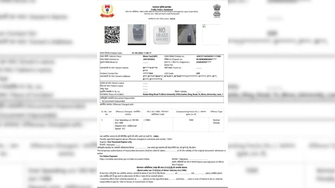 તેની કાર રસ્તા પર લગભગ 91 કિમી પ્રતિ કલાકની ઝડપે દોડી રહી હતી, જે વધુ ઝડપે વાહન ચલાવવા અને ટ્રાફિક નિયમોનું ઉલ્લંઘન માનવામાં આવે છે. રાજધાની રાંચીમાં રોડ કેમેરા દ્વારા તેની મર્સિડીઝ કારનો ફોટો ક્લિક થયો, ત્યારબાદ ₹ 1000 નો ઈ-ચલણ જારી કરવામાં આવ્યો હતો.