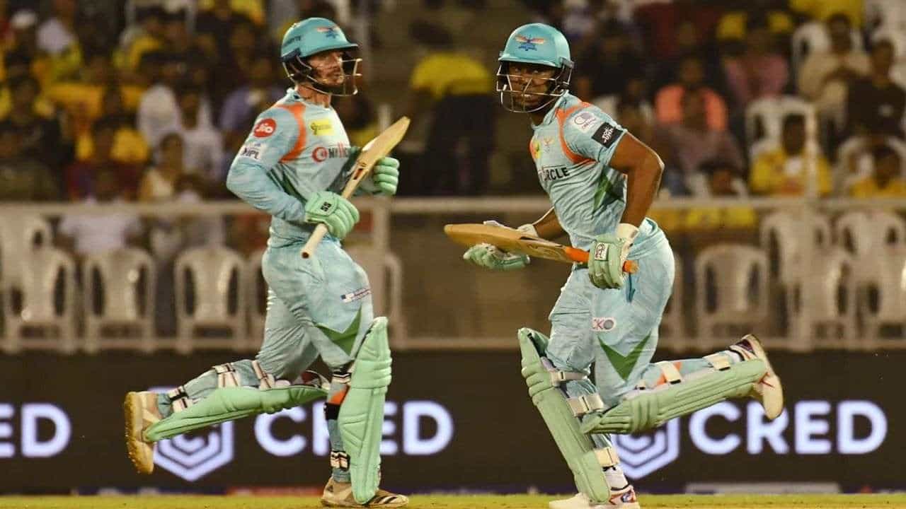 ચેન્નાઈ સામે લખનૌની ટીમના ઓપનરોએ મજબૂત શરુઆત આપી હતી. ઓપનર કેએલ રાહુલ અને ક્વિન્ટન ડીકોકે 99 રનની ભાગીદારી રમત રમી હતી. બંનેએ આક્રમકતા સાથે રમત રમી હતી. કેપ્ટન કેએલ રાહુલે 3 છગ્ગા અને 2 ચોગ્ગા ફટકારીને 40 રન 26 બોલમાં નોંધાવ્યા હતા. જોકે તે પ્રિટોરિયસની જાળમાં સપડાઈ ગયો હતો. તેના બદલામાં ક્રિઝ પર આવેલ મનિષ પાંડે (5) ઝડપથી પરત ફર્યો હતો. જોકે ડિકોકે રમતને આગળ વધારવા પ્રયાસ જારી રાખ્યો હતો અને મેચને રોમાંચક સ્થિતીમાં લાવી દીધી હતી. તેણે અડધી સદી નોંધાવતી રમત રમી હતી. 45 બોલમાં 61 રન 9 ચોગ્ગાની મદદથી કર્યા હતા.