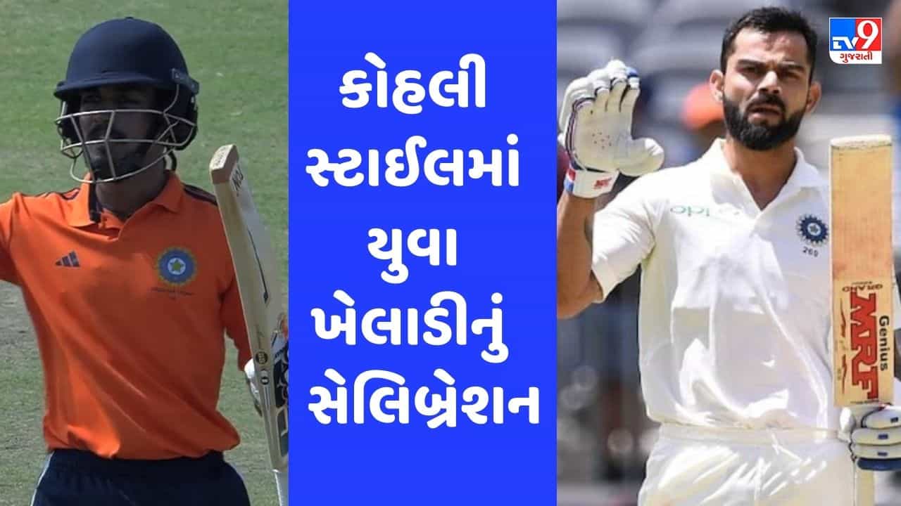 ઘણા ભારતીય યુવા બેટ્સમેનો પોતાની ટીમ માટે વિરાટ કોહલી (Virat Kohli) જેવું પ્રદર્શન કરવા માંગે છે. માત્ર કોહલીની જેમ બેટિંગ જ નહીં પરંતુ વિરાટની જેમ મેદાન પર આક્રમક બનવા માંગે છે અને કોહલીની જેમ જ ઉજવણી કરવા પણ માંગે છે. કેરળનો બેટ્સમેન રોહન કુન્નુમલ (Rohan Kunnummal) પણ કોહલીનો મોટો ફેન છે અને તેની જેમ જ સેન્ચુરીને સેલિબ્રેટ કરે છે.