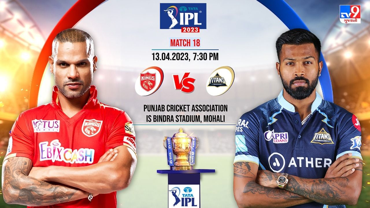 આઈપીએલની 16મી સિઝનમાં રોમાંચક મેચ જોવા મળી રહી છે. છેલ્લા કેટલાક સમયથી દરેક મેચનો નિર્ણય છેલ્લા બોલ પર જોવા મળી રહ્યો છે. આજે આઈપીએલ 2023ની 18મી મેચ ગુજરાત ટાઈટન્સ અને પંજાબ કિંગ્સ વચ્ચે રમાશે. ગુજરાતની ટીમ 3 મેચમાં 2 જીત સાથે હાલમાં પોઈન્ટ ટેબલ પર ચોથા સ્થાને છે, જ્યારે પંજાબ કિંગ્સ 3 મેચમાં 1 હાર સાથે છઠ્ઠા ક્રમે છે. આ બંને ટીમો પોતાની છેલ્લી મેચ હારી છે.