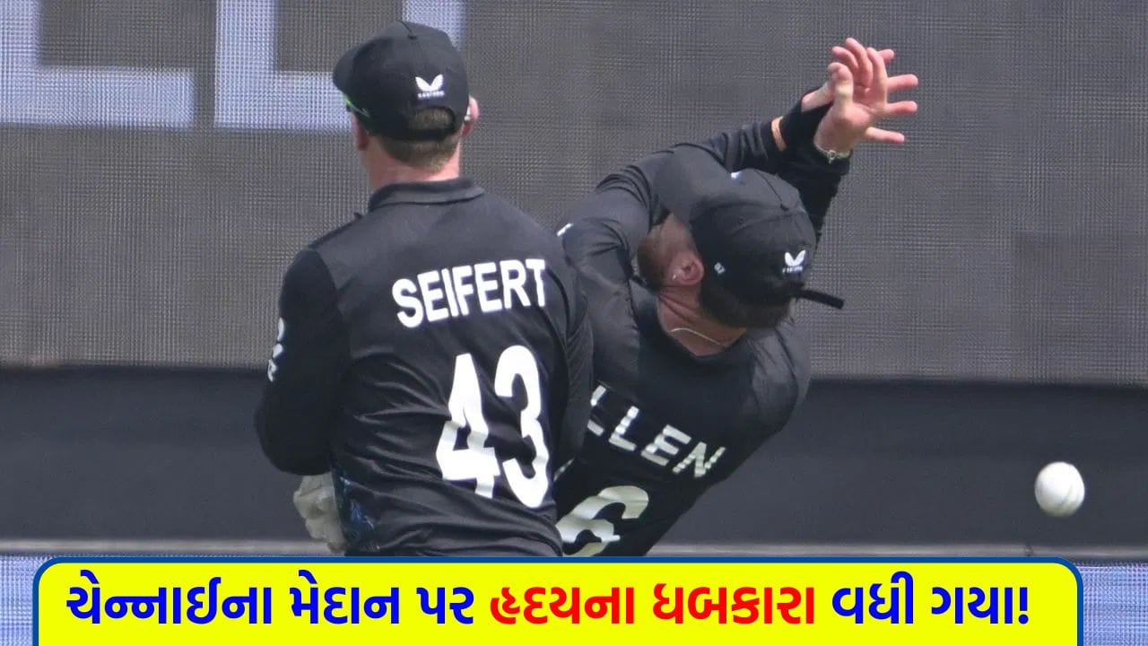 ટી20 વર્લ્ડ કપની ચોથી મેચમાં ન્યૂઝીલેન્ડ અને અફઘાનિસ્તાન બંને ટીમ સામસામે હતી. આ મેચમાં ન્યૂઝીલેન્ડની ટીમ પહેલા બોલિંગ કરી રહી હતી પરંતુ ઇનિંગની ત્રીજી ઓવરમાં જ કંઈક એવું બન્યું કે, જેના કારણે કિવી ટીમના જ બે ખેલાડીઓ એકબીજા સાથે અથડાયા હતા. આ એક દ્રશ્યએ ત્યાં હાજર ખેલાડીઓ અને પ્રેક્ષકોને થોડીવાર માટે ચિંતામાં મૂકી દીધા હતા.