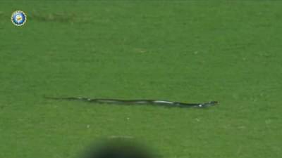 સ્વાભાવિક રીતે આવી સ્થિતિમાં રમત બંધ કરવી પડી હતી. કંઈપણ અનિચ્છનીય ઘટના બને કે અઘટીત સર્જાય તે પહેલાં, ફિલ્ડમેનની એક ટીમ આ સાપને પકડવા માટે ઝડપથી પહોંચી ગયું, જેમણે સફળતાપૂર્વક અને સંપૂર્ણ સતર્કતા સાથે સાપને પકડી લીધો અને પછી મેચ ફરી શરૂ થઈ શકી હતી.