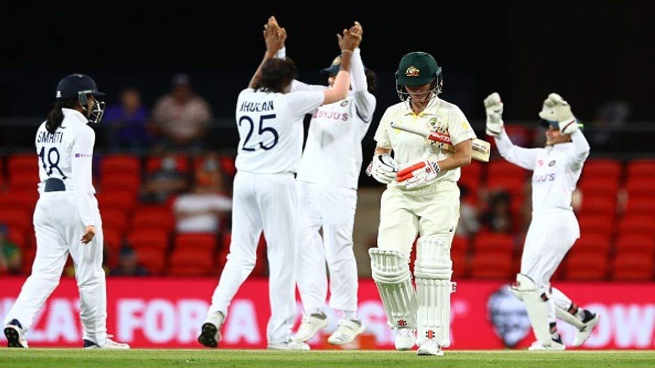 ભારતીય ટીમે (Team India) પ્રથમ દાવ આઠ વિકેટે 377 રને ડિકલેર કર્યો હતો. ઓસ્ટ્રેલિયાને પ્રથમ ઝટકો બેથ મૂનીના રૂપમાં મળ્યો હતો, જેને ઝુલન ગોસ્વામી (Jhulan Goswami) એ બોલ્ડ કર્યો હતો.