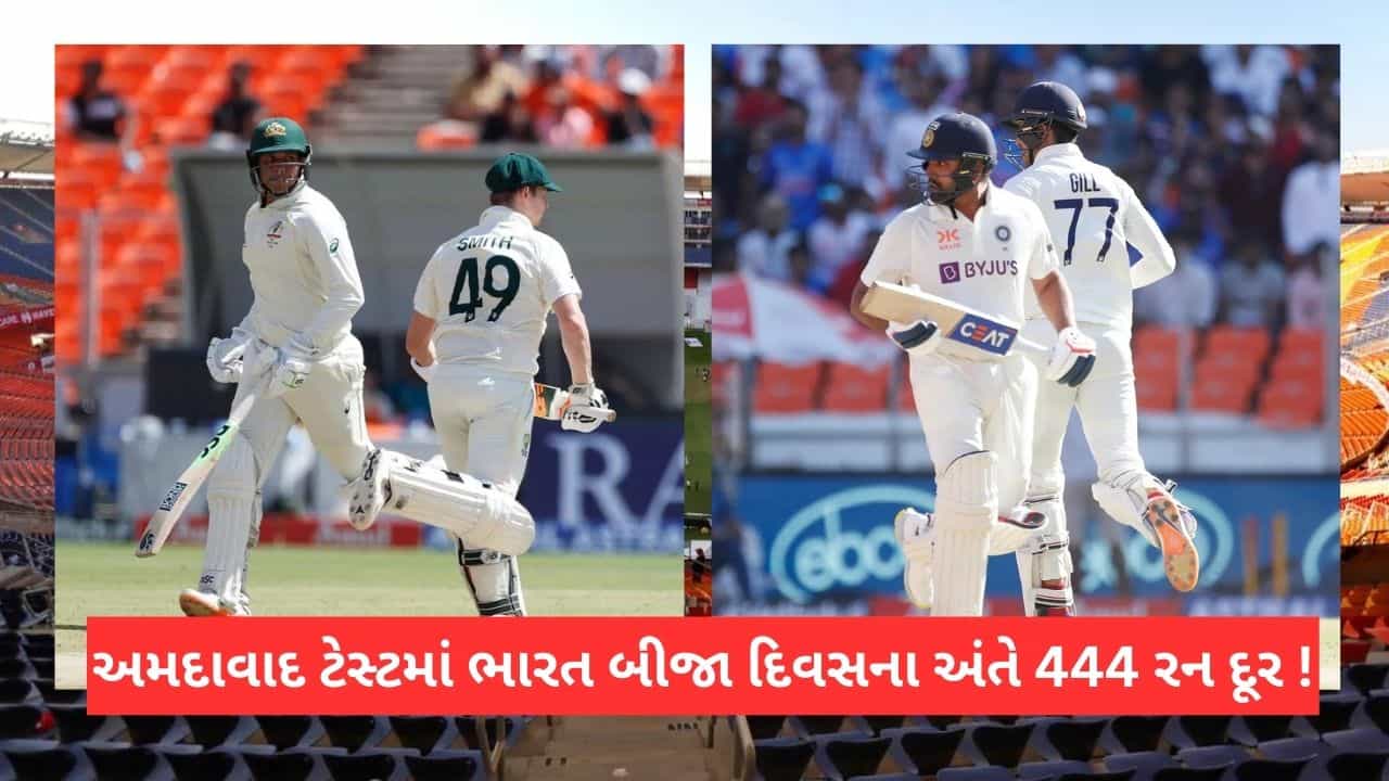 ભારત અને ઓસ્ટ્રેલિયા વચ્ચે રમાઈ રહેલી અમદાવાદ ટેસ્ટમાં બીજા દિવસની રમત દરમિયાન ટીમ ઈન્ડિયાનો પ્રથમ દાવ અંતિમ સેશનમાં શરુ થયો હતો. ઓસ્ટ્ર્લિયાએ પ્રથમ દાવમાં 480 રનનો વિશાળ સ્કોર ખડક્યો હતો. ઉસ્માન ખ્વાજા અને કેમરોન ગ્રીનની સદીની મદદ વડે ઓસ્ટ્રેલિયાએ આ વિશાળ સ્કોર ખડક્યો હતો. ભારતે અંતિમ સેશનમાં રમતની શરુઆત કરતા 36 રનનો સ્કોર નોંધાવ્યો હતો. આમ 444 રન દૂર ઓસ્ટ્રેલિયાના પ્રથમ દાવના સ્કોરથી છે. આમ ભારતને હવે મોટી ઈનીંગની જરુર વર્તાઈ રહી છે. જે ત્રીજા દિવસની રમતની દરમિયાન જરુર છે.