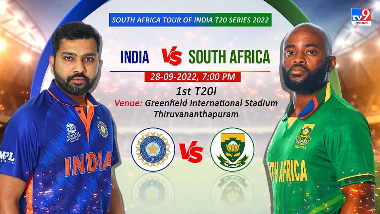 ભારત અને દક્ષિણ આફ્રિકા (India vs South Africa) વચ્ચે ત્રણ મેચની T20 શ્રેણીની પ્રથમ મેચ આજે તિરુવનંતપુરમના ગ્રીનફિલ્ડ સ્ટેડિયમમાં રમાશે. આ સિરીઝ બંને ટીમો માટે વર્લ્ડ કપની તૈયારીઓની કસોટી કરવાની મોટી તક છે. ભારતે (Indian Cricket Team) તાજેતરમાં જ ત્રણ મેચની T20I શ્રેણીમાં ઓસ્ટ્રેલિયાને 2-1થી હરાવ્યું હતું. હવે તેની કોશિશ હશે કે આ સિરીઝ પણ તેના નામે થાય. ઉપરાંત, તે આ શ્રેણીમાં તેની ખામીઓને દૂર કરવાનો પ્રયાસ કરશે. સાઉથ આફ્રિકા હજુ સુધી ભારતમાં ટી-20 સિરીઝ હારી નથી. ટીમ ઈન્ડિયા (Team India) આ વખતે તેને આ ઘા આપવા ઈચ્છશે.