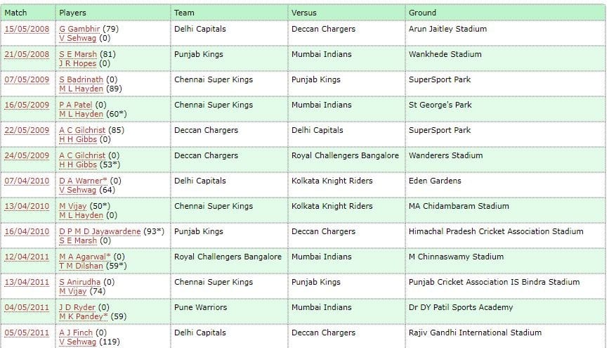 દિલ્હીના ઓપનર ડેવિડ વોર્નર 0 રન પર આઉટ થયો હતો. જ્યારે ફિલ સોલ્ટે દિલ્હી માટે 35 બોલમાં 59 રન બનાવ્યા હતા. છેલ્લા 15 વર્ષમાં આઈપીએલમાં આ 63મી ઘટના બની હતી. જ્યારે એક ઓપનર ડક થયો હોય અને એક ઓપનરે 50થી વધારે રન બનાવ્યા હોય. ચાલો જાણીએ 63 વાર બનેલી ઘટના સાથે બનેલી રસપ્રદ વાતો.