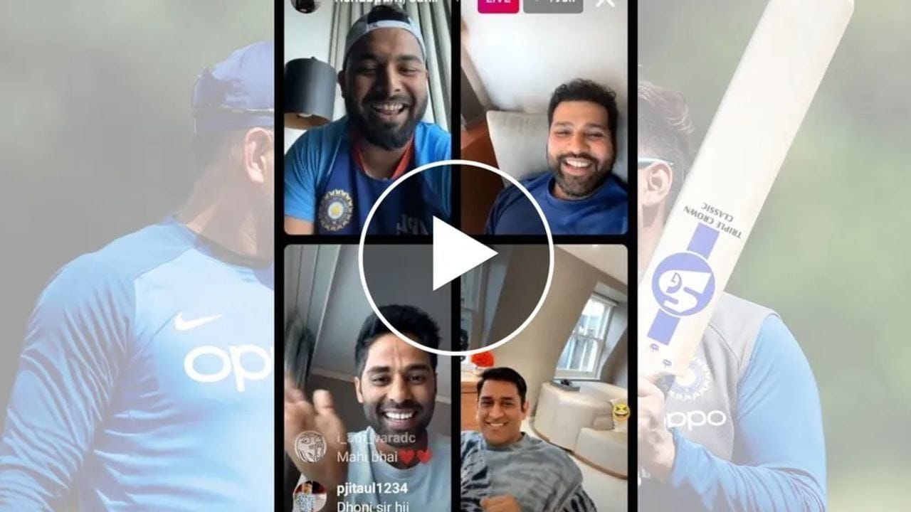 આ દરમિયાન રિષભ પંતે કેટલાક ચાહકોના રિએક્શન પણ લીધા અને તેમની સામે પોતાની પ્રતિક્રિયા પણ વ્યક્ત કરી. ભારતીય ચાહકો માટે આ સરપ્રાઈઝ પૂરતું હશે. પરંતુ ખરી રમત થોડા સમય પછી થઈ. એમએસ ધોની (MS Dhoni) ની પત્ની સાક્ષી ફરીથી આ ચેટમાં જોડાઈ. જેણે થોડી જ સેકન્ડોમાં ફોનનો કેમેરો ફેરવી નાખ્યો અને બધાના ચહેરા ચમકી ઉઠ્યા. સ્ક્રીન પર આવેલ ‘માહી ભાઈ’ બધાને પસંદ પડી ગયા. ધોનીને જોઈને ત્રણેય ખેલાડીઓ ખુશ થઈ ગયા અને ધોની પણ હસી રહ્યો હતો. તેણે હાથ મિલાવ્યા અને તેના ભૂતપૂર્વ સાથી ખેલાડીઓને ‘હાઈ’ કહ્યું. પછી પંતે કંઈક એવું કહ્યું કે ધોનીએ ગાયબ થવાનું નક્કી કર્યું. પંતે સાક્ષીને કહ્યું કે માહી ભાઈને થોડો સમય સ્ક્રીન પર રાખો. પરંતુ આ સાંભળતા જ ધોનીએ તરત જ ફોન પર દુર કરી દીધો અને ફોન નીચે પડી ગયો.આ પછી ધોની સ્ક્રીન પર પાછો ન આવ્યો. પરંતુ તેની પ્રતિક્રિયા જોઈને પંત, રોહિત શર્મા અને સૂર્યકુમાર યાદવ પણ જોરથી હસી પડ્યા.