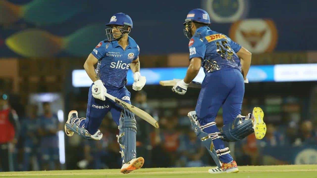 મુંબઈની ઓપનીંગ જોડીએ સારી રમત દર્શાવી હતી. રોહિત શર્મા અને ઈશાન કિશન ઓપનીંગ કરવા માટે આવ્યા હતા અને તેઓએ શરુઆતથી જ બેટ ખોલીને રમત દર્શાવી હતી. બંનેએ જ્યા મોકો મળે ત્યાં બાઉન્ડરી મેળવવાની તક શોધી નિકાળી હતી. જોકે 74 રનના સ્કોર પર રોહિત શર્માના રુપમાં પ્રથમ વિકેટ મુંબઈએ ગુમાવી હતી. રોહિત શર્માએ 28 બોલમાં 43 રન નોંધાવ્યા હતા. તેણે 2 છગ્ગા ફટકાર્યા હતા.