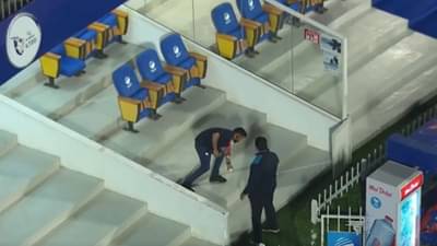 મુંબઈની ઈનિંગની 18મી ઓવરમાં ડેન મુસલીએ સિક્સ ફટકારી હતી. આ સિક્સ સીધી મેદાનની બહાર ગયો અને રસ્તા પર પડ્યો. શારજાહની ધરતી પરની આ આશ્ચર્યજનક ફોટો નથી. કારણ કે મેદાન એટલું નાનું છે કે અહીં રમાતી મેચોમાં બોલ બહાર જાય છે અને સ્ટેડિયમને અડીને આવેલા રોડ પર પડે છે.સ્ટેડિયમની બહાર રોડ પર ડેન મુસ્લીની સિક્સ પડતા જ ત્યાં હાજર એક વ્યક્તિએ બોલ લીધો અને પછી ભાગી ગયો. તે સ્પષ્ટ છે કે મેચને ફરીથી શરૂ કરવા માટે નવા બોલનો ઉપયોગ કરવામાં આવ્યો હોવો જોઈએ. પરંતુ, 19મી ઓવરમાં ફરી આવી જ ઘટના બની.
