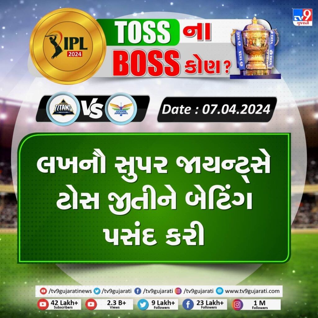 લખનૌ સુપર જાયન્ટ્સે ટોસ જીતીને પ્રથમ બેટિંગ કરવાનો નિર્ણય કર્યો હતો. ગુજરાતની ટીમ પ્રથમ બોલિંગ કરશે.