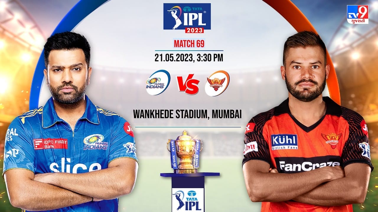 IPL 2023 ના લીગ તબક્કાનો રવિવારે અંતિમ દિવસ છે. પ્લેઓફની રેસનો રોમાંચ પણ અંતિમ દિવસ અને અંતિમ મેચ સુધી જળવાયેલો રહેશે. રવિવારે ડબલ હેડર દિવસમાં પ્રથમ મેચ મુંબઈ ઈન્ડિયન્સ અને સનરાઈઝર્સ હૈદરાબાદ વચ્ચે વાનખેડે સ્ટેડિયમમાં રમાઈ રહી છે. અહીં હૈદરાબાદ પોતાની અંતિમ લીગ મેચની ઔૅપચારીકતા પૂરી કરશે, પરંતુ મુંબઈ ઈન્ડિયન્સના શ્વાસ પ્લેઓફમાં પહોંચવાને લઈ અટકેલા છે. હૈદરાબાદ સામે મુંબઈએ મોટી જીત મેળવવી જરુરી છે, જે તેને પ્લેઓફના અંતિમ સ્થાન પર પહોંચાડી શકે છે.